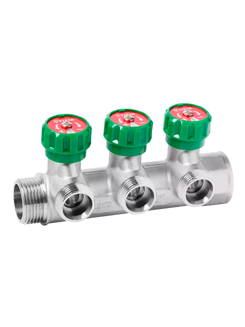Коллектор VIEIR VR526-3 выхода служит для изменения протока воды или теплоносителя в определенное направление, для чего на нем установлено два ручных регулировочных крана с плавным закрытием/открытием. Коллектор является универсальным и может использоваться как для организации подающей линии, так и для подключения обратной линии. Для визуального определения горячей или холодной линии (воды) достаточно перевернуть метку на верней части крана. Так же, в верхней части крана размещен указатель предназначения конкретного вывода, на котором можно выбрать назначения «Туалет», «Стиральная машина», «Ванна», «Биде», «Душ», «Раковина», «Бойлер». Крепления не входят в комплект поставки.